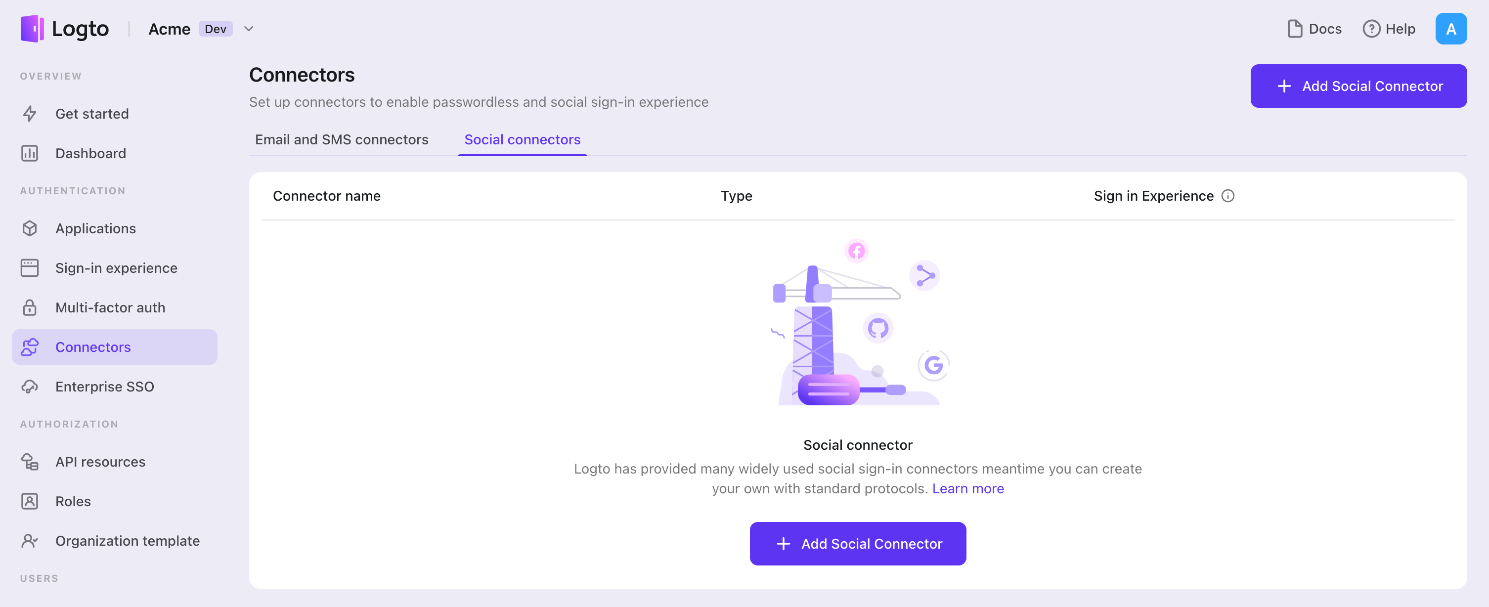 - Navega a Console > Connectors > Social Connectors.